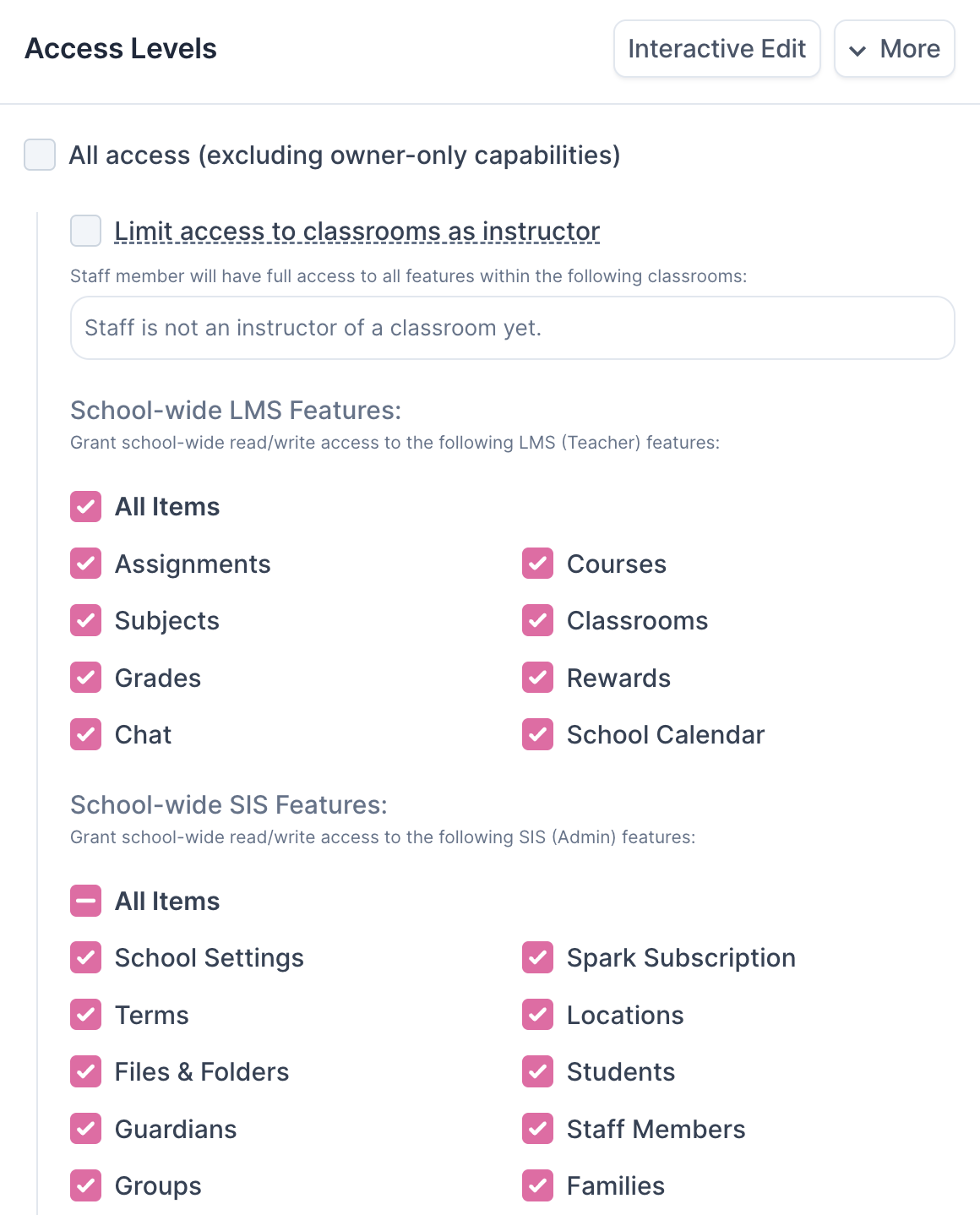 Control exactly who on your team can view student records, family information, and financial data. Spark lets you customize access levels for each staff member, so sensitive student information stays on a need-to-know basis.